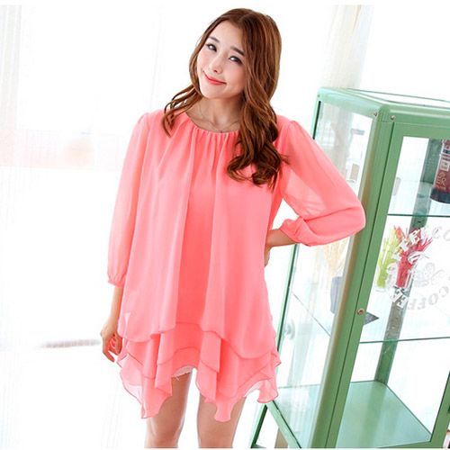 【菟絲花】大尺碼-韓版女裝多層長款雪紡裙