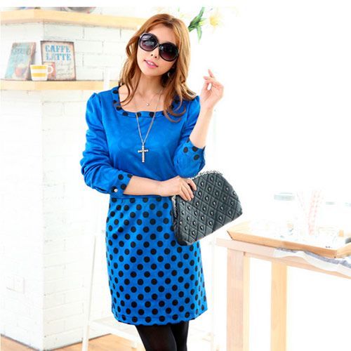 【菟絲花】大尺碼-圓點拼接氣質修身連衣裙