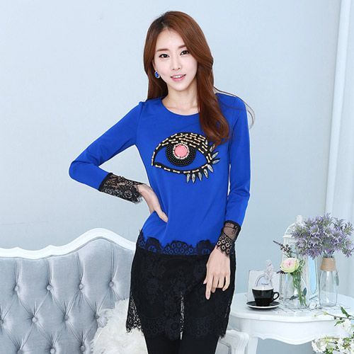 【NINI OL】大尺碼-眼睛圖案釘鑽蕾絲拼接優雅氣質連衣裙打底裙